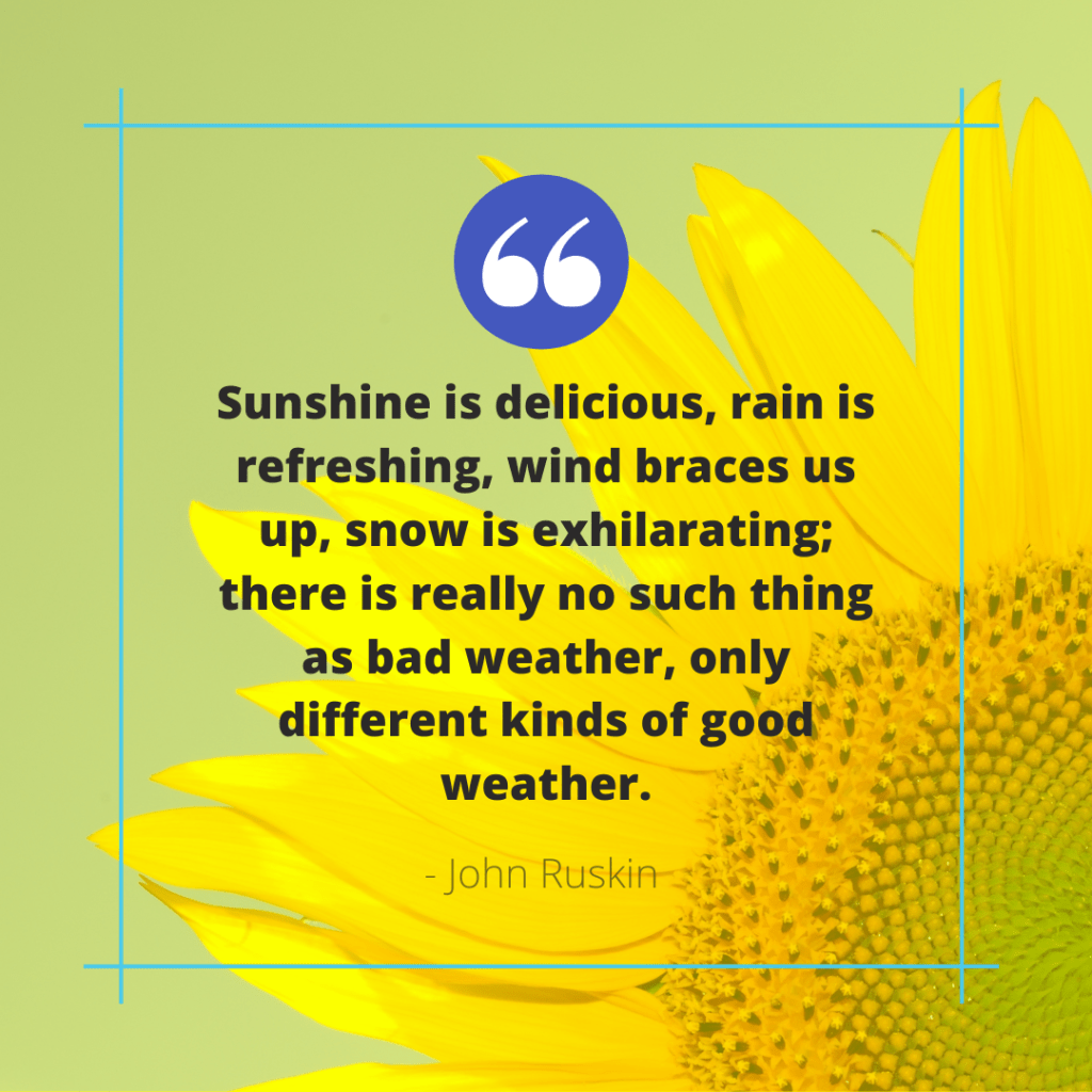 Sunshine is delicious, rain is refreshing, wind braces us up, snow is exhilarating; there is really no such thing as bad weather, only different kinds of good weather.